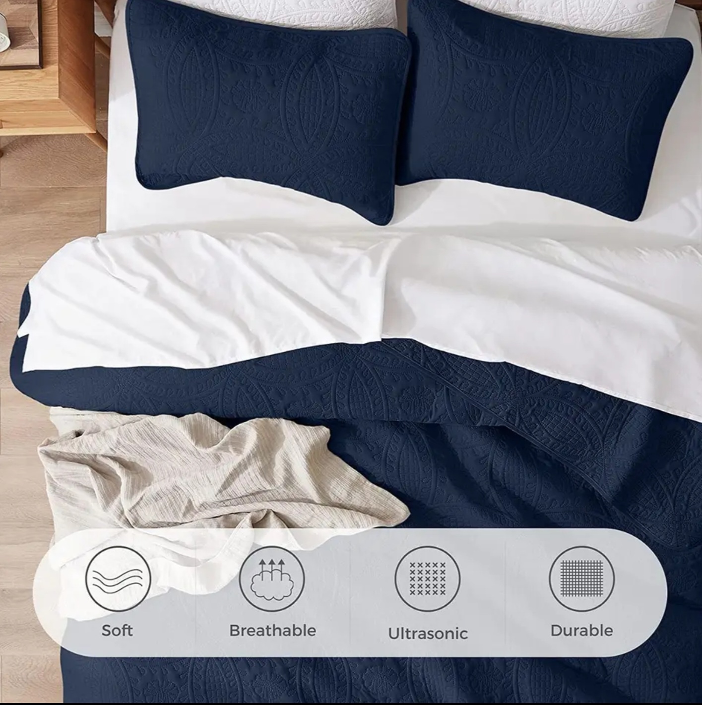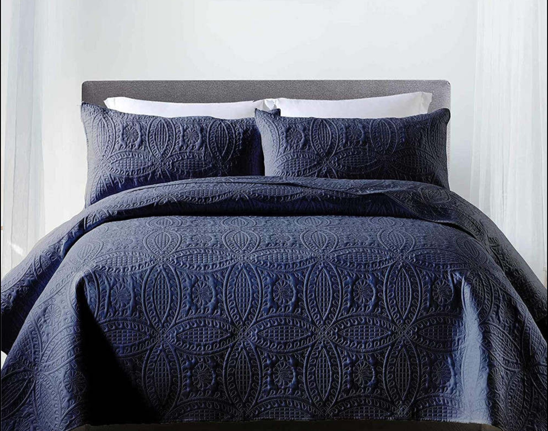 3 Pieces embossed coverlet / bedspread set, soft and durable microfibre fabric and filling. 2 x pillowcases
