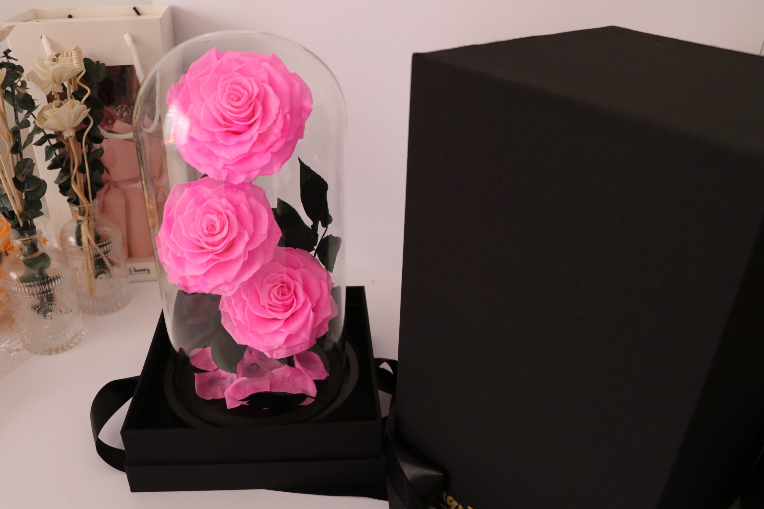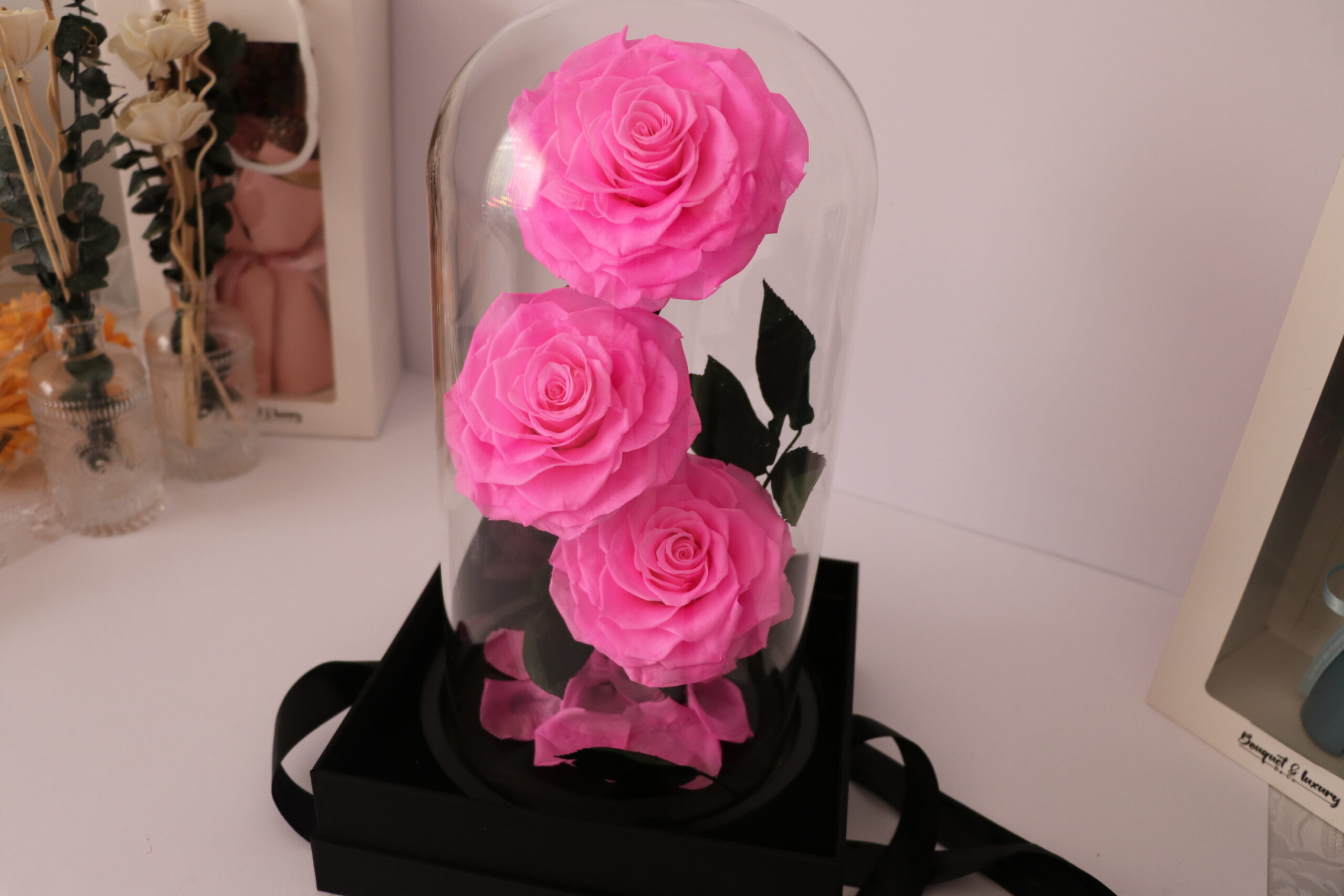 3 Preserved Roses Glass Dome-Baby Pink (With Gift Box)