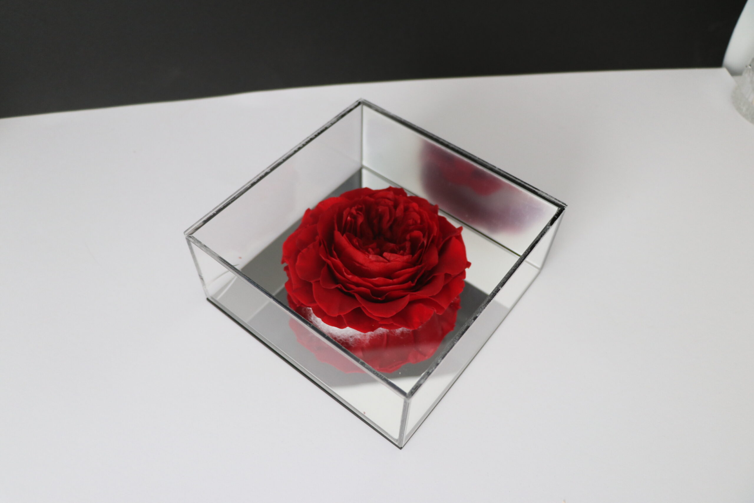 Preserved Peony Flower in Mirror Box –