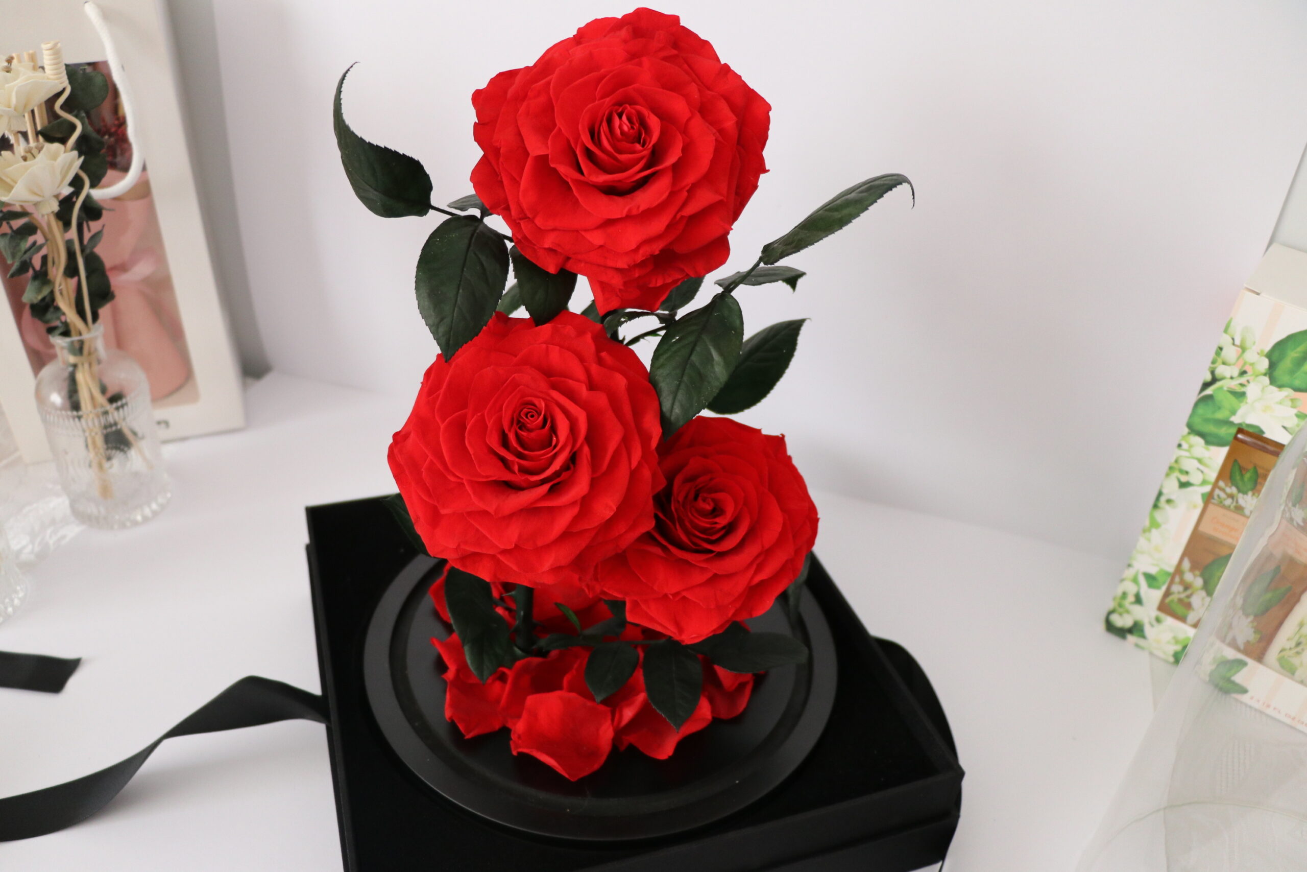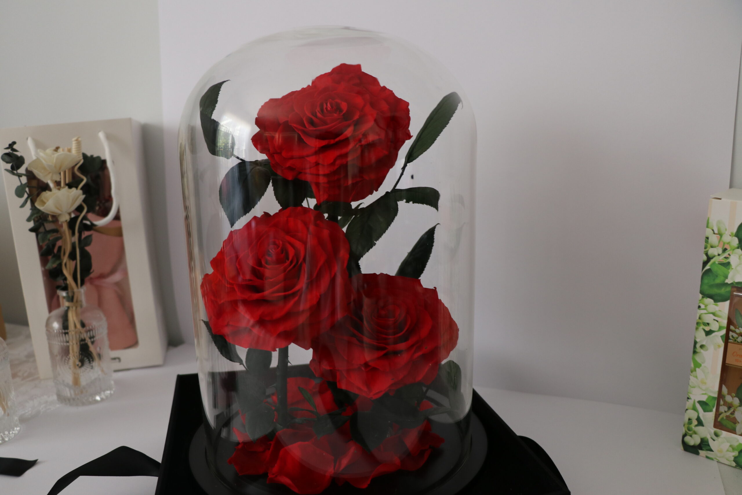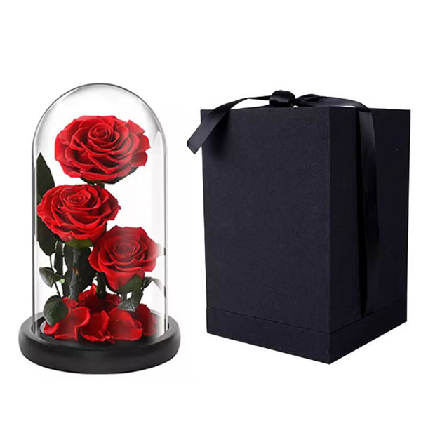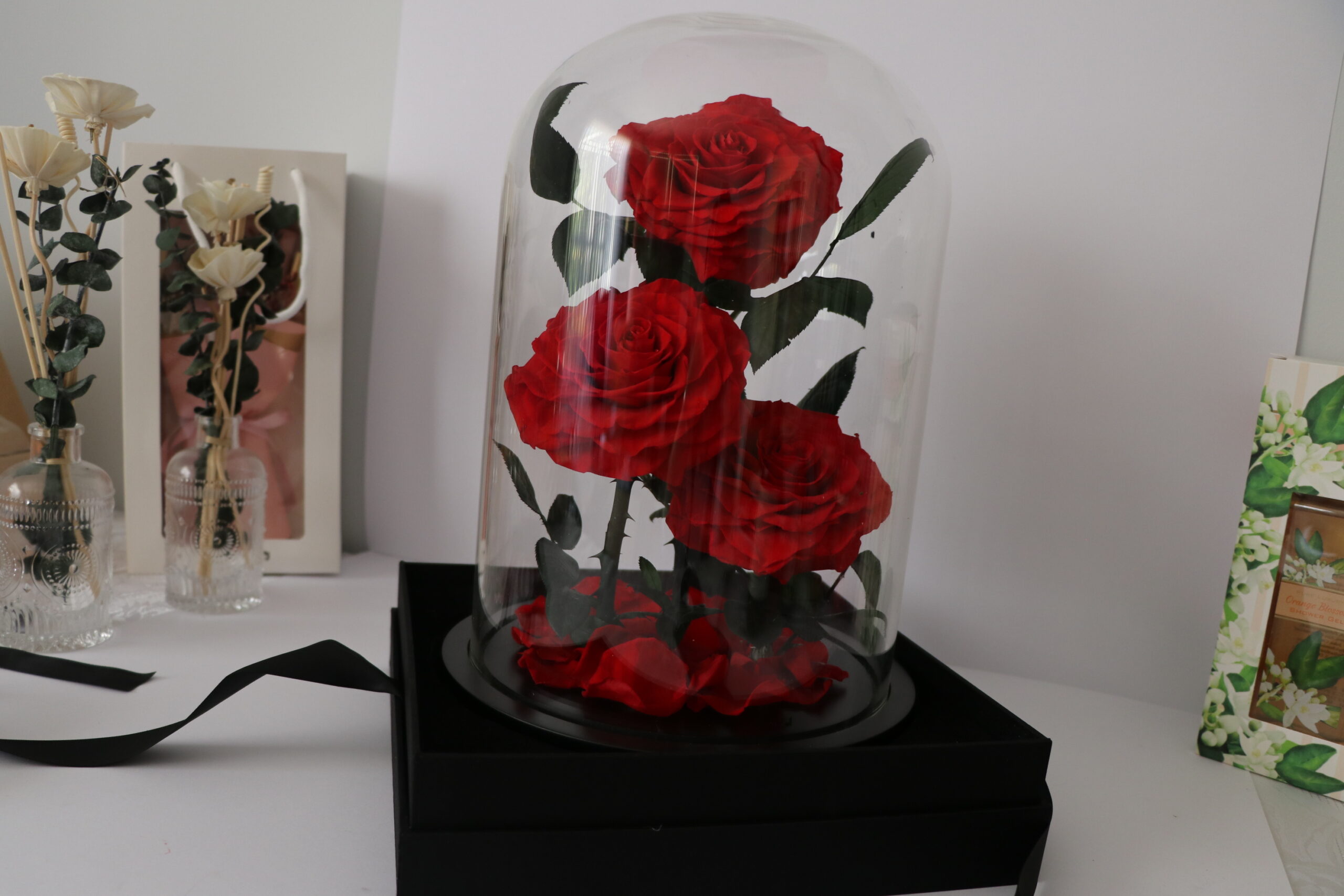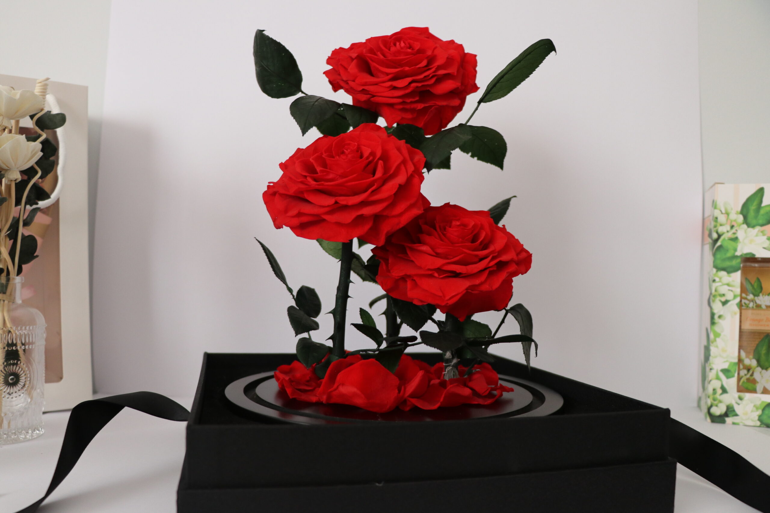 Preserved 3 Stem Rose Glass dome – With Gift Box