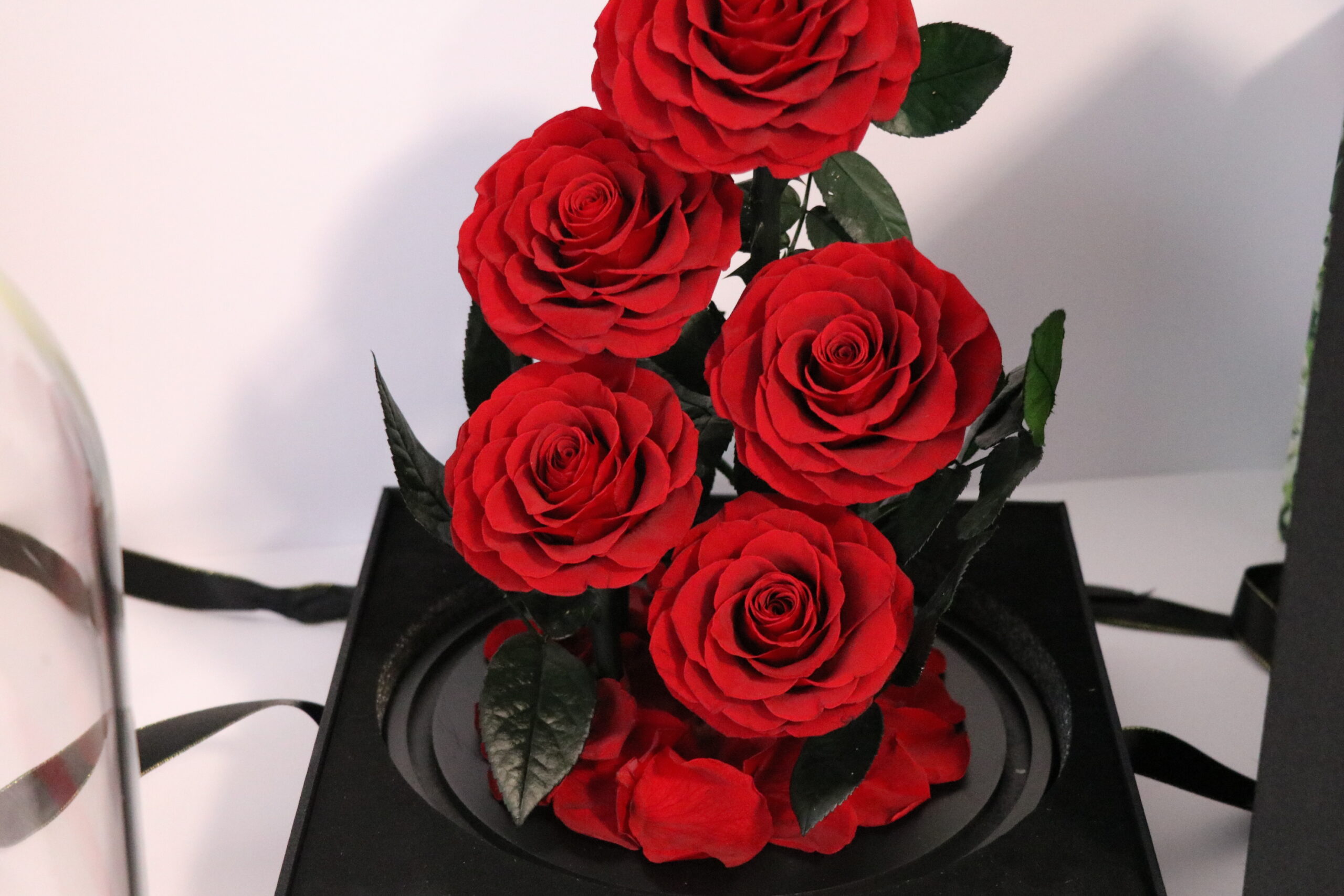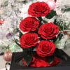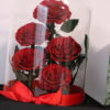 5 preserved roses in glass dome